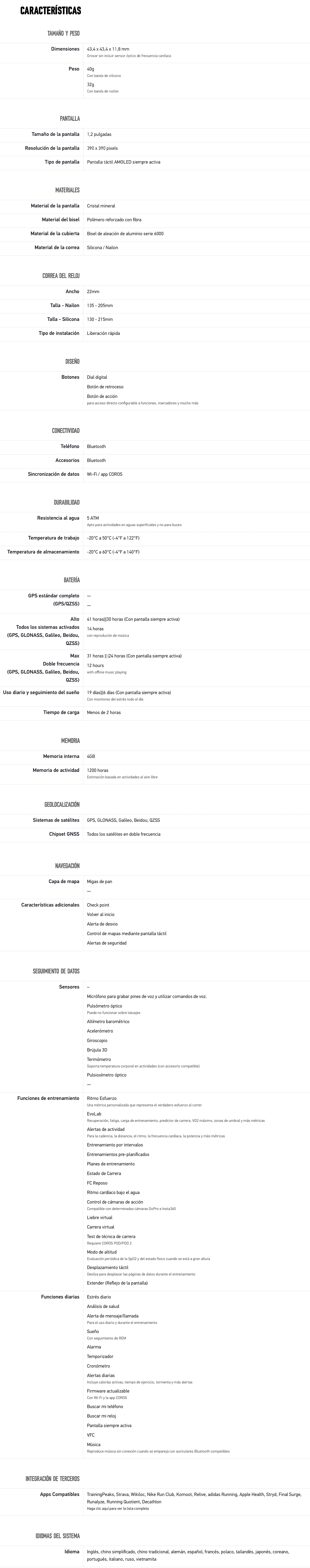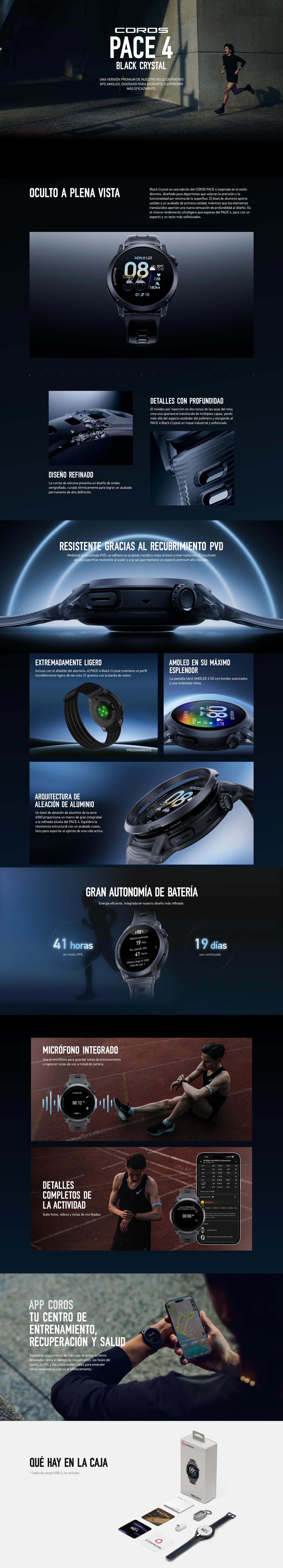 • Micrófono integrado para grabar registros y notas de entrenamiento, o para guardar recordatorios rápidos en mitad de la carrera.