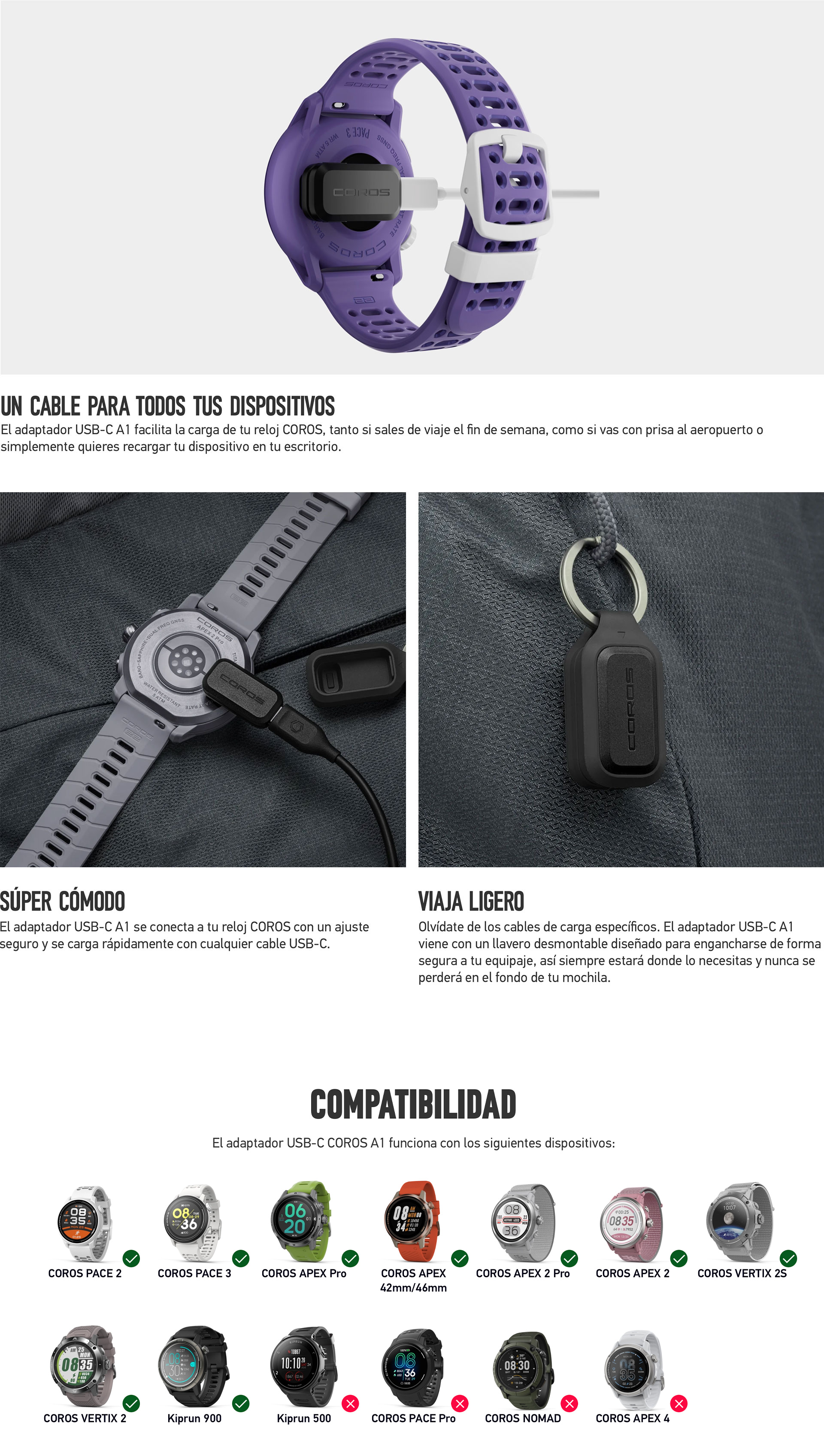 • No apto para COROS PACE Pro ni COROS NOMAD, que utilizan el adaptador A2
